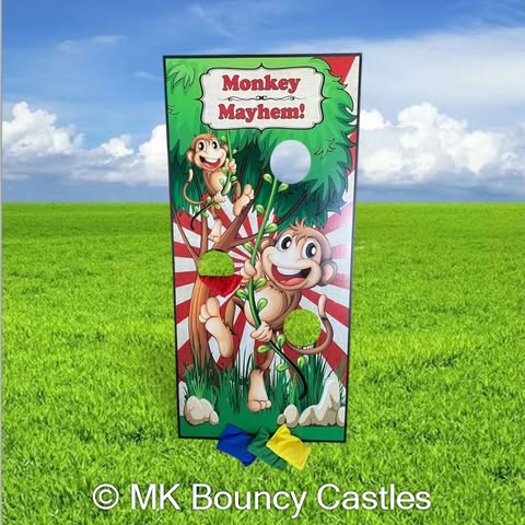 Monkey Mayhem is a classic retro carnival and fete game loved by everyone. It is handmade in wood, stands 4ft tall and has a rear support to make it very stable. It comes with all accessories to play the game. Available in the standard red striped