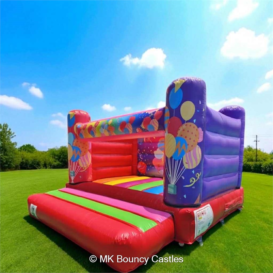 Reserve this show-stopping 12 x 12 Low Height Party Theme Bouncy Castle — for your next event. Limited availability on weekends. Contact us today to check dates and add delivery, setup, ππ